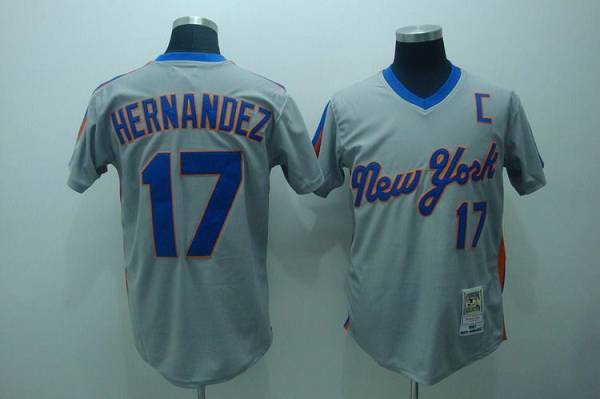 Authentic MLB Mitchell and Ness Mets #17 Keith Hernandez Stitched Grey Throwback MLB Jersey
