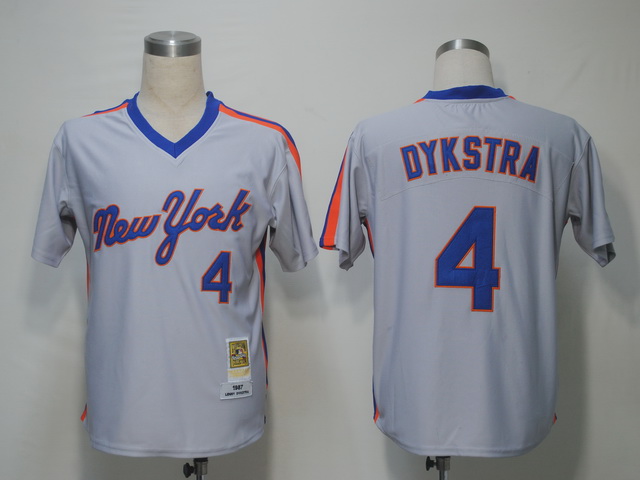 Authentic MLB Mitchell and Ness Mets #4 Lenny Dykstra Grey Stitched Throwback MLB Jersey