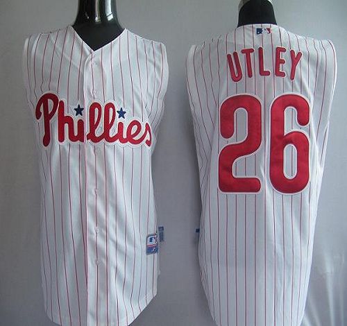Authentic MLB Phillies #26 Chase Utley White(Red Strip) Vest Style Stitched MLB Jersey