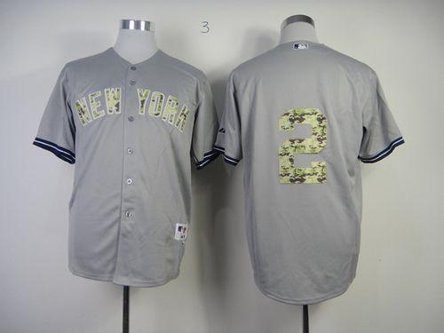 Authentic MLB Yankees #2 Derek Jeter Grey USMC Cool Base Stitched MLB Jersey