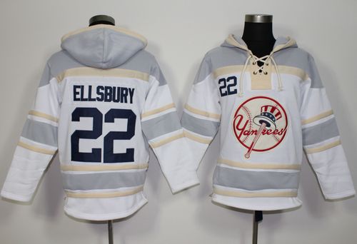 Authentic MLB Yankees #22 Jacoby Ellsbury White Sawyer Hooded Sweatshirt MLB Hoodie