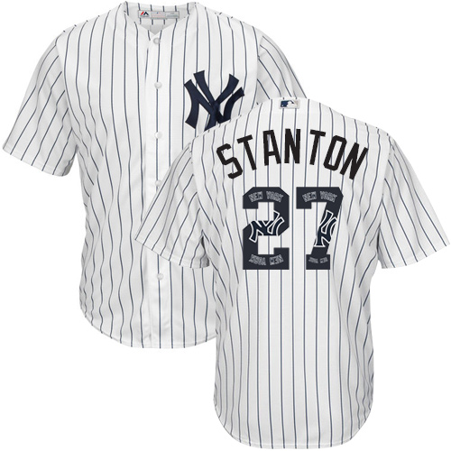 Authentic MLB Yankees #27 Giancarlo Stanton White Strip Team Logo Fashion Stitched MLB Jersey