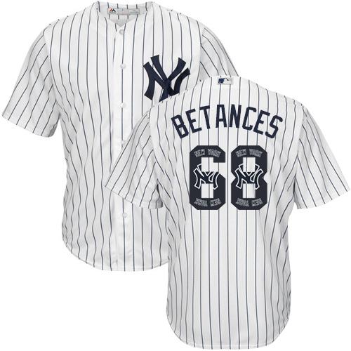 Authentic MLB Yankees #68 Dellin Betances White Strip Team Logo Fashion Stitched MLB Jersey