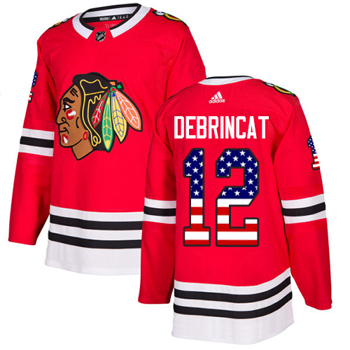 NHL Hockey Adidas Blackhawks #12 Alex DeBrincat Red Home Authentic USA Flag Stitched NHL Jersey