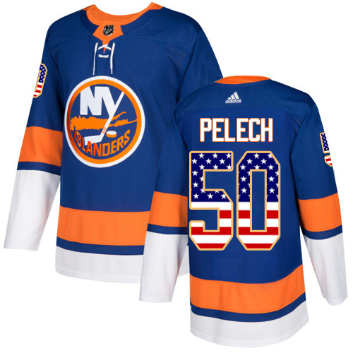 NHL Hockey Adidas Islanders #50 Adam Pelech Royal Blue Home Authentic USA Flag Stitched NHL Jersey