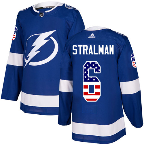 NHL Hockey Adidas Lightning #6 Anton Stralman Blue Home Authentic USA Flag Stitched NHL Jersey