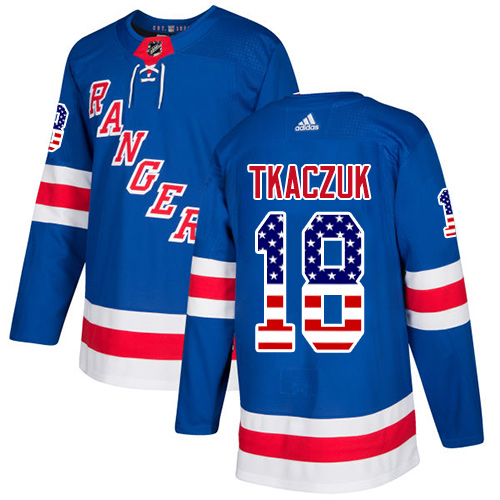 NHL Hockey Adidas Rangers #18 Walt Tkaczuk Royal Blue Home Authentic USA Flag Stitched NHL Jersey