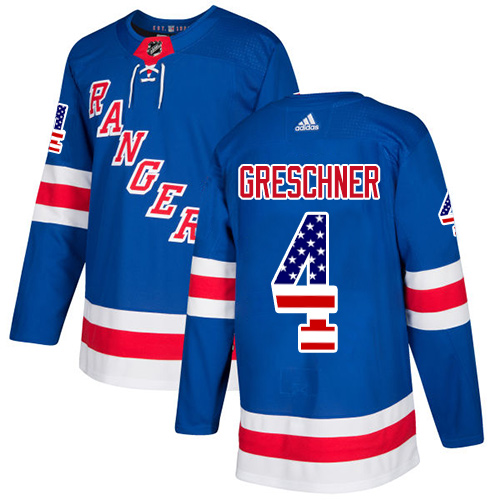 NHL Hockey Adidas Rangers #4 Ron Greschner Royal Blue Home Authentic USA Flag Stitched NHL Jersey
