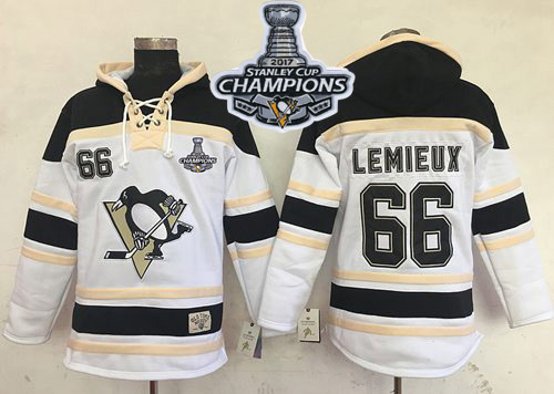 NHL Hockey Penguins #66 Mario Lemieux White Sawyer Hooded Sweatshirt Stanley Cup Finals Champions Stitched NHL Jersey