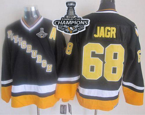 NHL Hockey Penguins #68 Jaromir Jagr Black/Yellow CCM Throwback Stanley Cup Finals Champions Stitched NHL Jersey