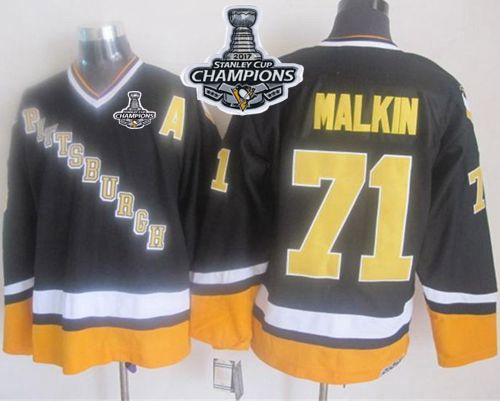 NHL Hockey Penguins #71 Evgeni Malkin Black/Yellow CCM Throwback Stanley Cup Finals Champions Stitched NHL Jersey