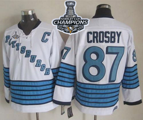 NHL Hockey Penguins #87 Sidney Crosby White/Light Blue CCM Throwback Stanley Cup Finals Champions Stitched NHL Jersey